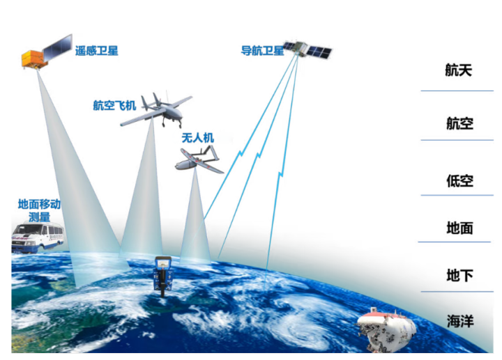 时空信息的落地,靠的是一套覆盖“数据获取-处理-应用”的完整技术体系,核心是“天-空-地-海”协同: